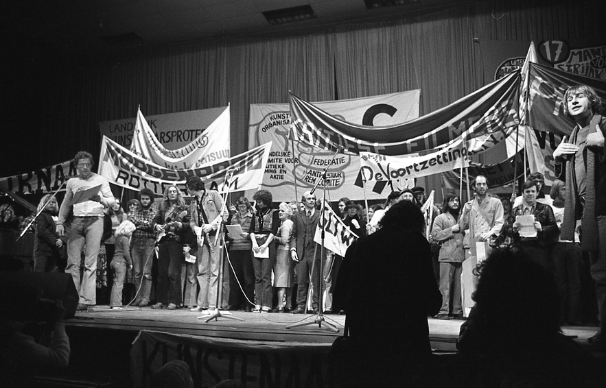 proloog@toneelwerkgroepproloog.nl   Bij gebruik van fotomateriaal voorzien van naamsvermelding dient deze te worden toegepast. |  | Landelijk Kunstenaars Protest 19 maart 1977 / Foto's P. Huijbens - foto 242 |  |  |